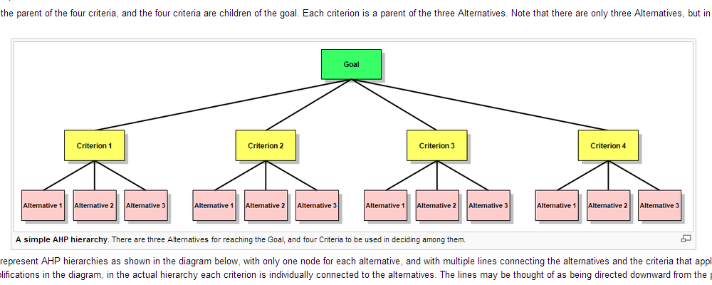 The selection of one alternative from a given set of alternatives, where there are multiple decision criteria involved. Putting a set of alternatives in order from most to least desirable.